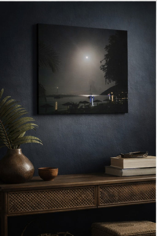 Printifynder the misty glow of a full moon, Great Harbor in Jost Van Dyke (British Virgin Islands) is bathed in a luminous silvery light. The moonlight pou...